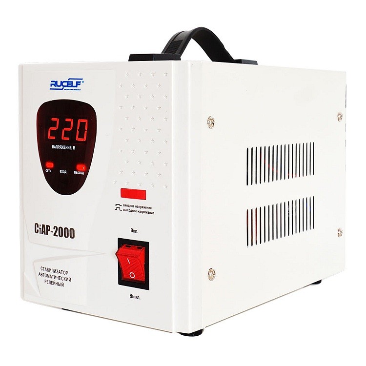 Стабилизатор Rucelf СтАР-2000 предназначен для поддержания стабильного напряжения в однофазных сетях для питания электроприборов бытового назначения 220 В, 50 Гц. Данная серия стабилизаторов напряжения разработана для защиты подключенных устройств при перепадах входного напряжения от 140 до 260 В. Отличительной чертой этой серии стабилизаторов является использование в конструкции высокоскоростных коммутирующих реле с повышенной скоростью срабатывания.