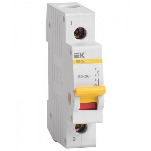 Выключатель нагрузки мини-рубильник IEK ВН-32 1Р служат для включения, проведения и отключения номинального тока в нормальных условиях эксплуатации, проведения тока в аварийных режимах, например, при коротком замыкании, а также для выполнения функций разъединения.