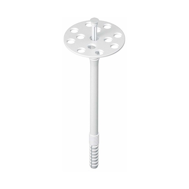 Данный крепеж состоит из дюбеля с двухсегментной распорной частью, имеющего увеличенную прижимную шайбу диаметром 60 мм и гвоздя. Различная длина дюбелей Koelner позволяет крепить теплоизоляционные материалы различной толщины.