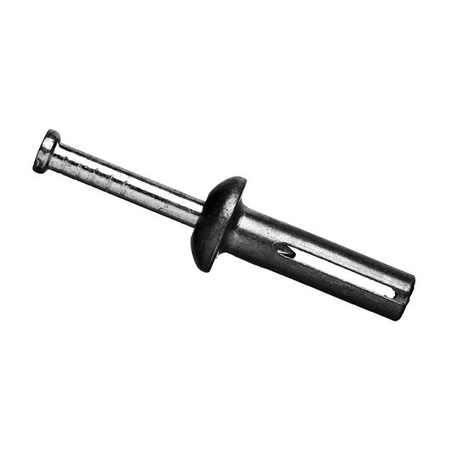 Дюбель гвоздь забиваемый металлический 6*65 мм используется при монтаже металлических профилей, кабельных каналов и прочих тонколистовых металлических конструкций, методом сквозного монтажа, к бетону, камню, полнотелому кирпичу. Состоит дюбель для бетона 6*65 мм из распорного дюбеля со стопорным бортиком и ударного элемента (гвоздя).