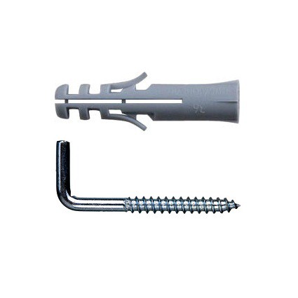 Дюбель с крюком Хортъ – универсальный крепежный элемент, предназначенный для монтажа самых разнообразных конструкций и деталей к полнотелым материалам (бетону, кирпичу, природному камню и т.д.). Помимо этого, данный элемент отлично монтируется к пенобетону, кирпичу с пустотами. Дюбель с крюком используют для монтажа кашпо для цветов, растяжек, верёвок, висячих кабелей и т.д.