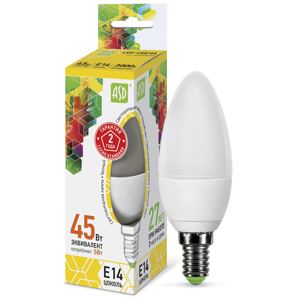 Светодиодная лампа ASD Standard Свеча 5W Е14 3000К обладает матовой колбой в форме свечи. Это безопасный, эффективный и экологичный источник освещения. Лампа излучает мягкий комфортный свет, широко применяется в люстрах и светильниках с открытым абажуром. Идеальный вариант для декоративного освещения в жилых помещениях – гостиных, обеденных зонах, спальнях и коридорах.